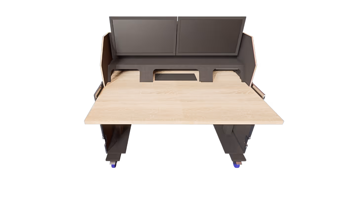 Your desk is designed around your screens, equipment, posture, and workflow—not the other way around.